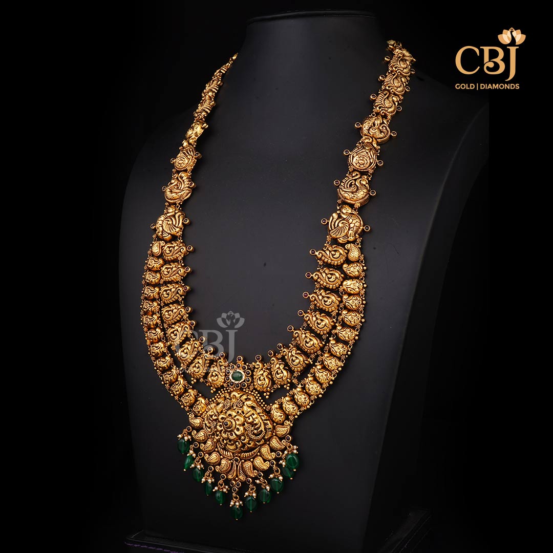 48 grams Antique lightweight Nakshi long Haram Necklace Design