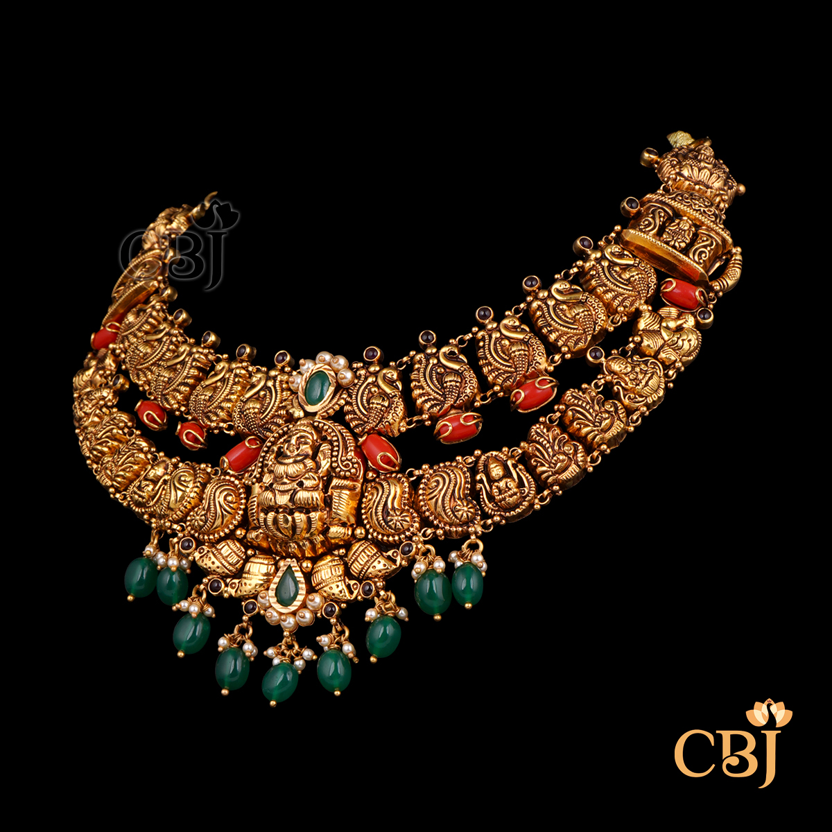 Antique Style 13 Grams Short Nakshi Gold Necklace Design
