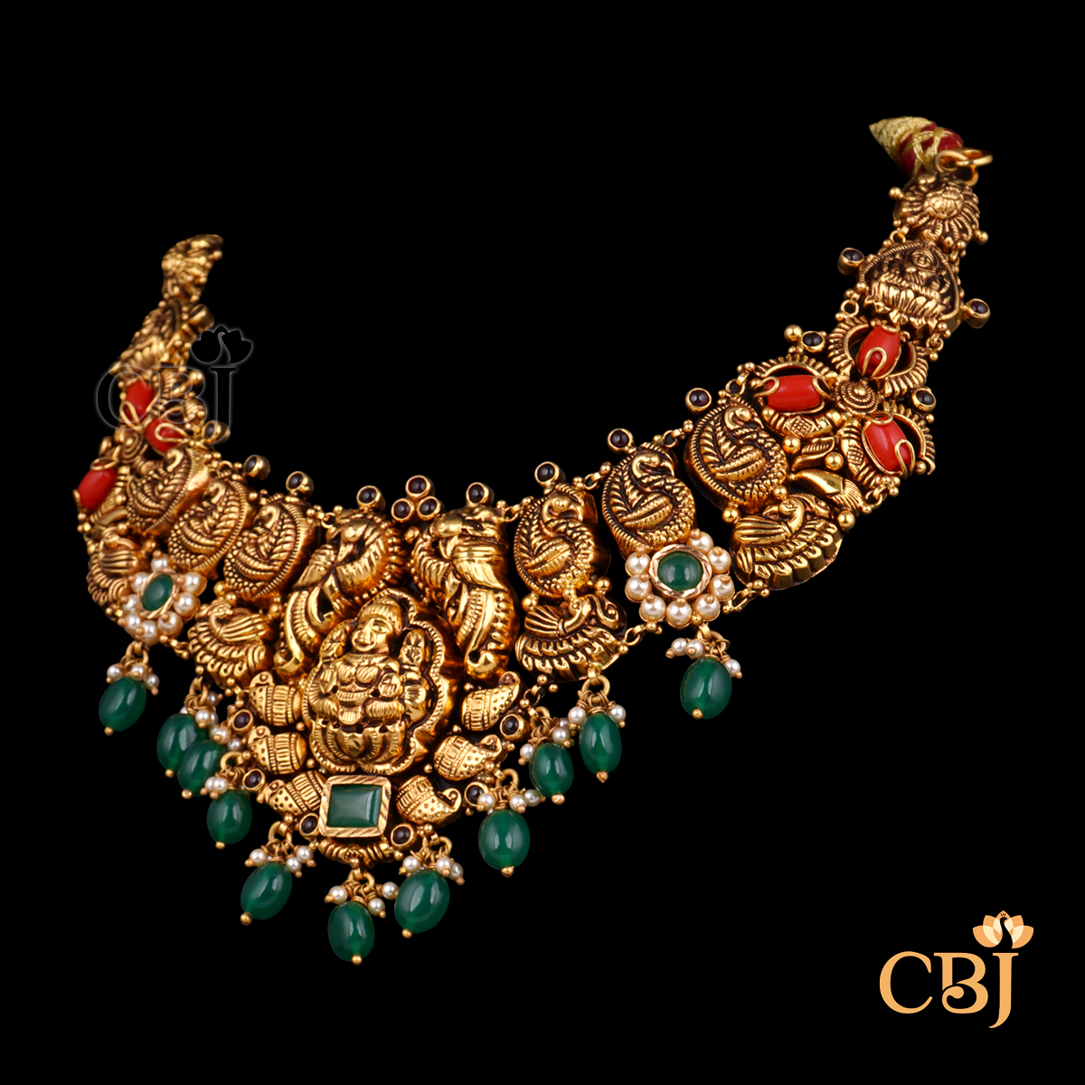 Antique Style 13 Grams Short Nakshi Gold Necklace Design