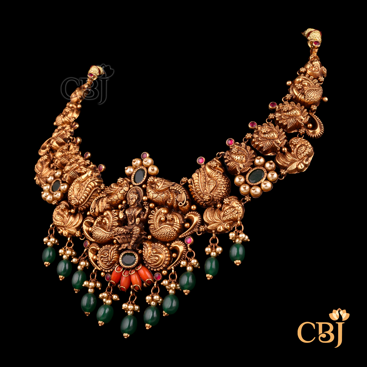 Antique Style 13 Grams Short Nakshi Gold Necklace Design