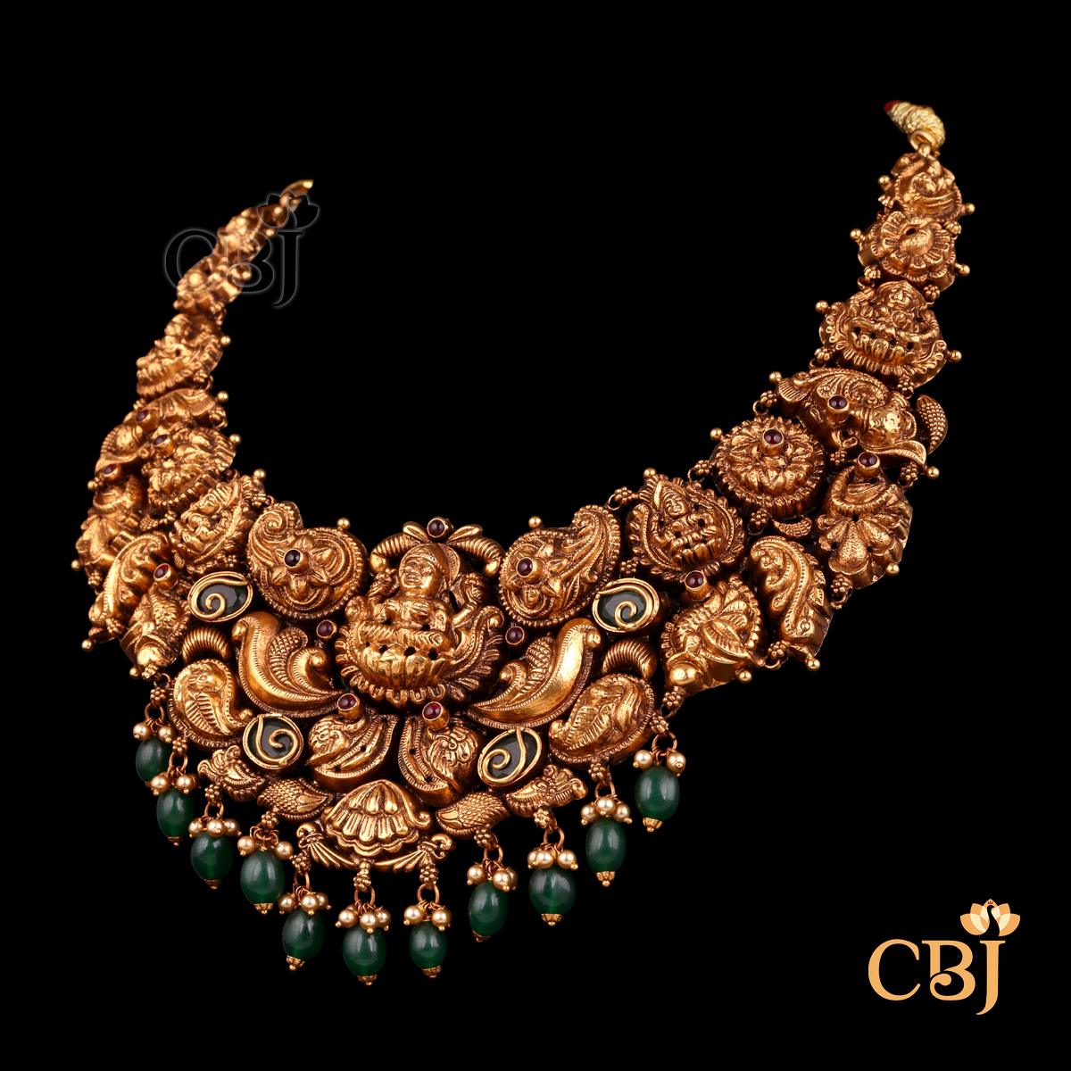 Antique Style 13 Grams Short Nakshi Gold Necklace Design