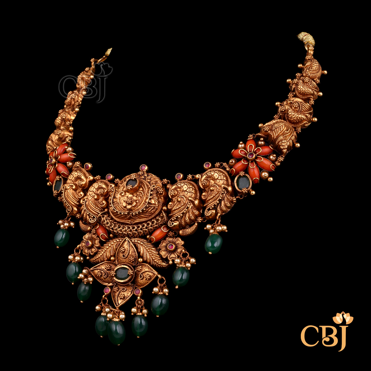 Antique Style 13 Grams Short Nakshi Gold Necklace Design