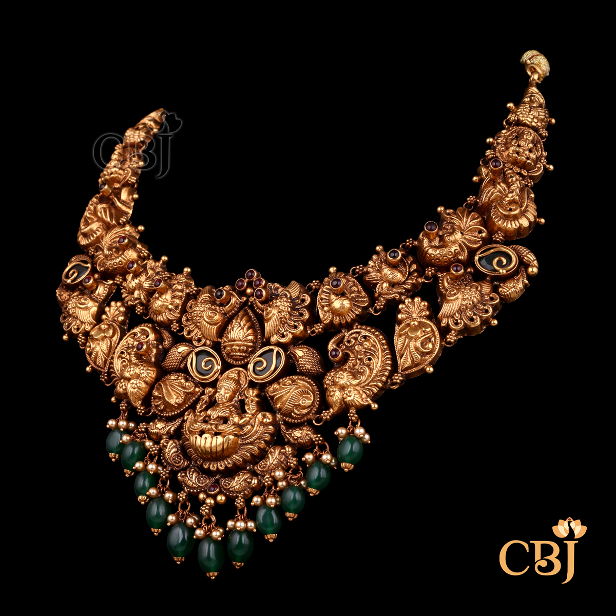 Antique Style 13 Grams Short Nakshi Gold Necklace Design