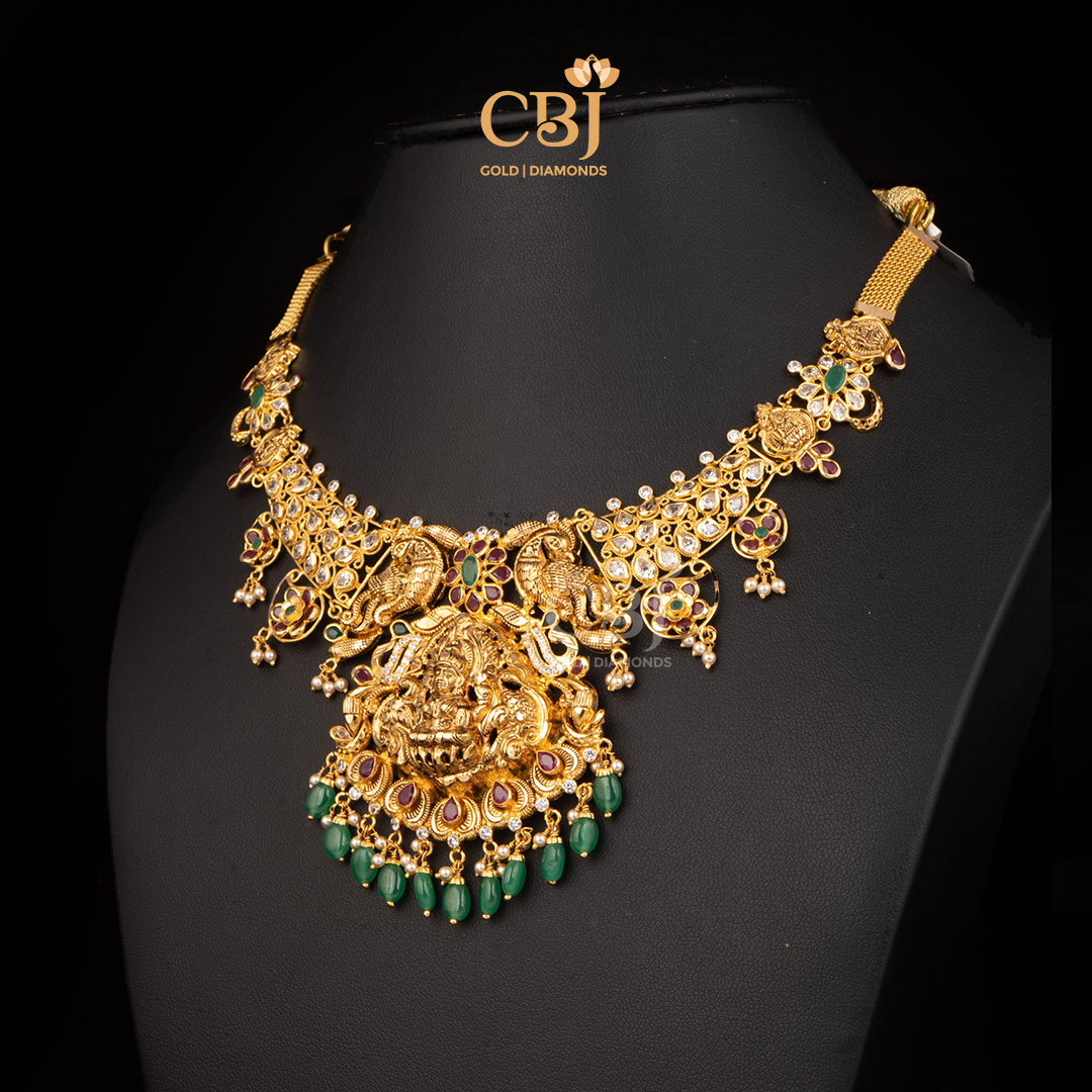 10 Grams Lightweight Antique Nakshi Short Gold Necklace Style