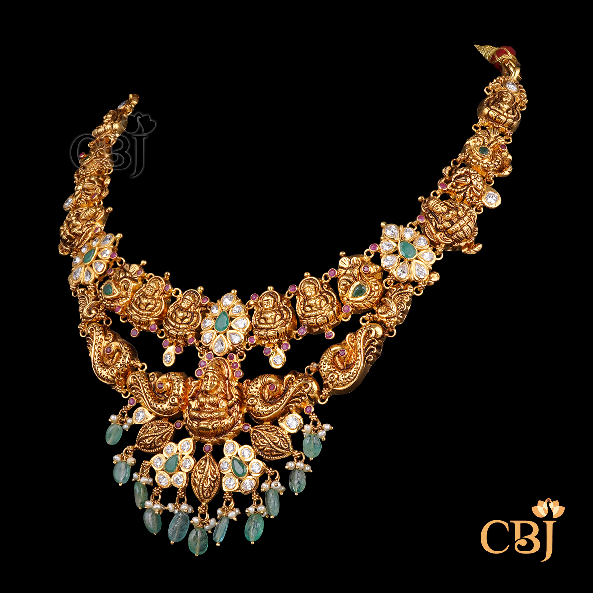 Lightweight 10 Grams Nakshi Gold Necklace with Classic Finish