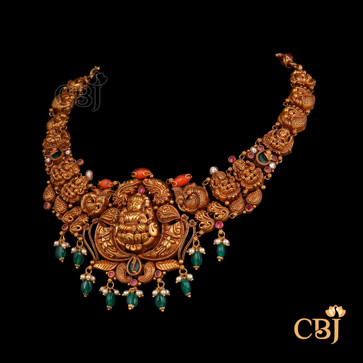 Lightweight 10 Grams Nakshi Gold Necklace with Classic Finish