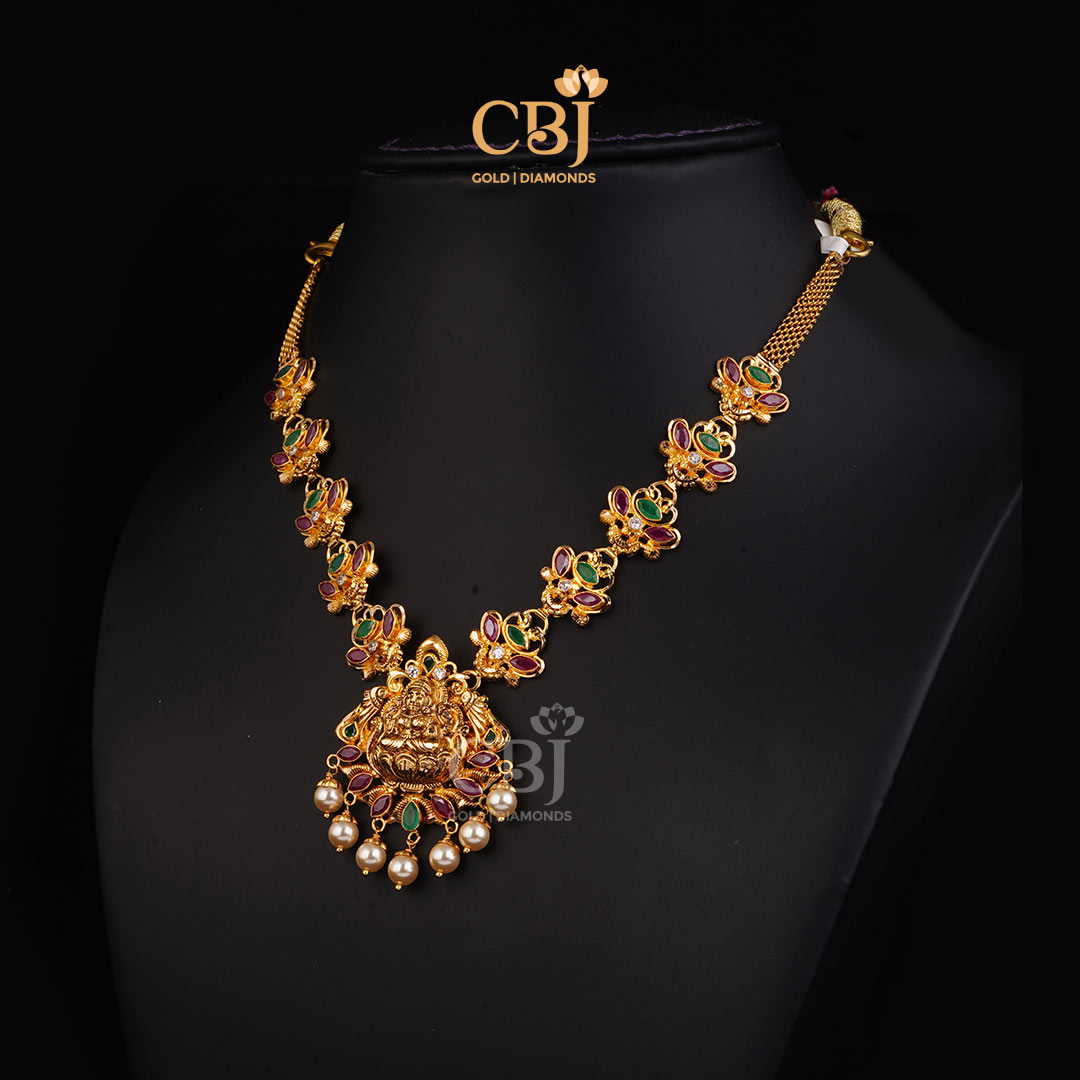 Lightweight 10 Grams Nakshi Gold Necklace with Classic Finish