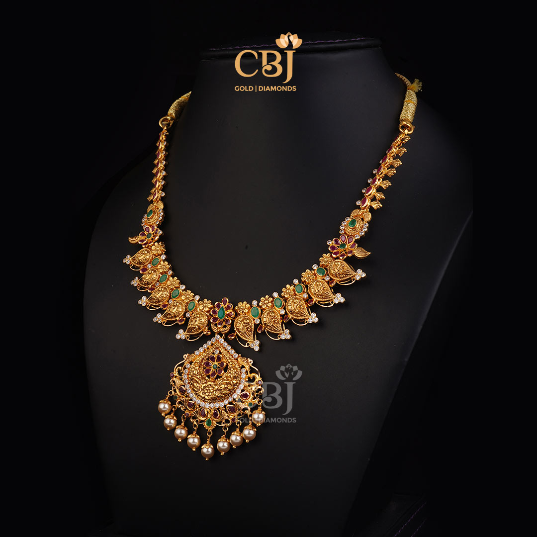 Lightweight 10 Grams Nakshi Gold Necklace with Classic Finish