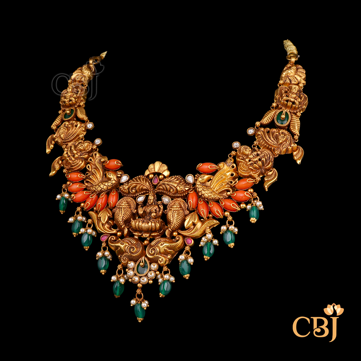Antique Style 13 Grams Short Nakshi Gold Necklace Design