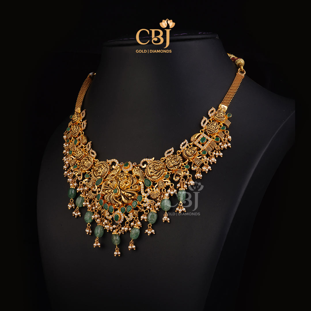 10 Grams Lightweight Antique Nakshi Short Gold Necklace Style