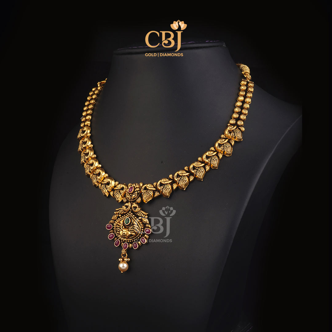 10 Grams Lightweight Antique Nakshi Short Gold Necklace Style