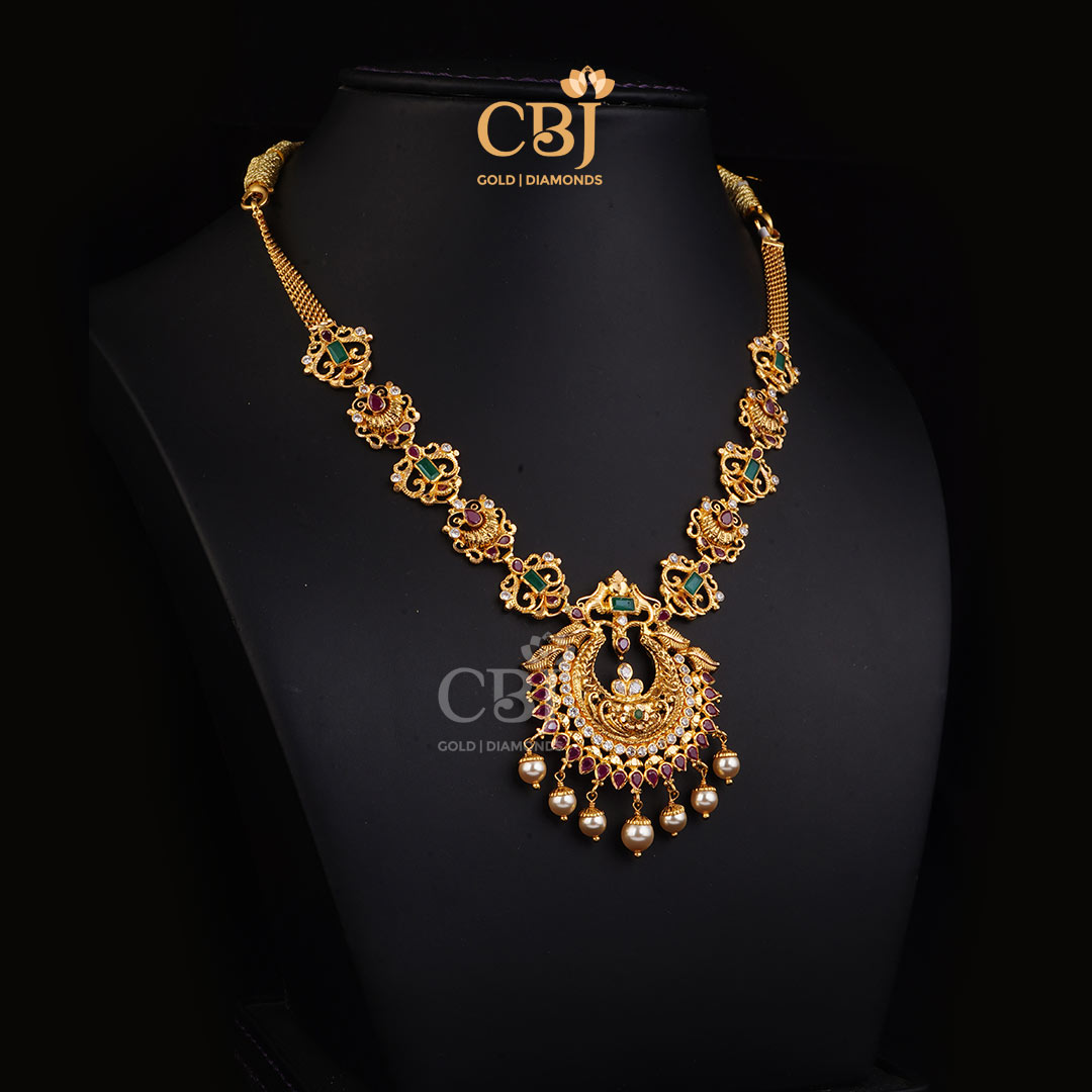 Lightweight 10 Grams Nakshi Gold Necklace with Classic Finish