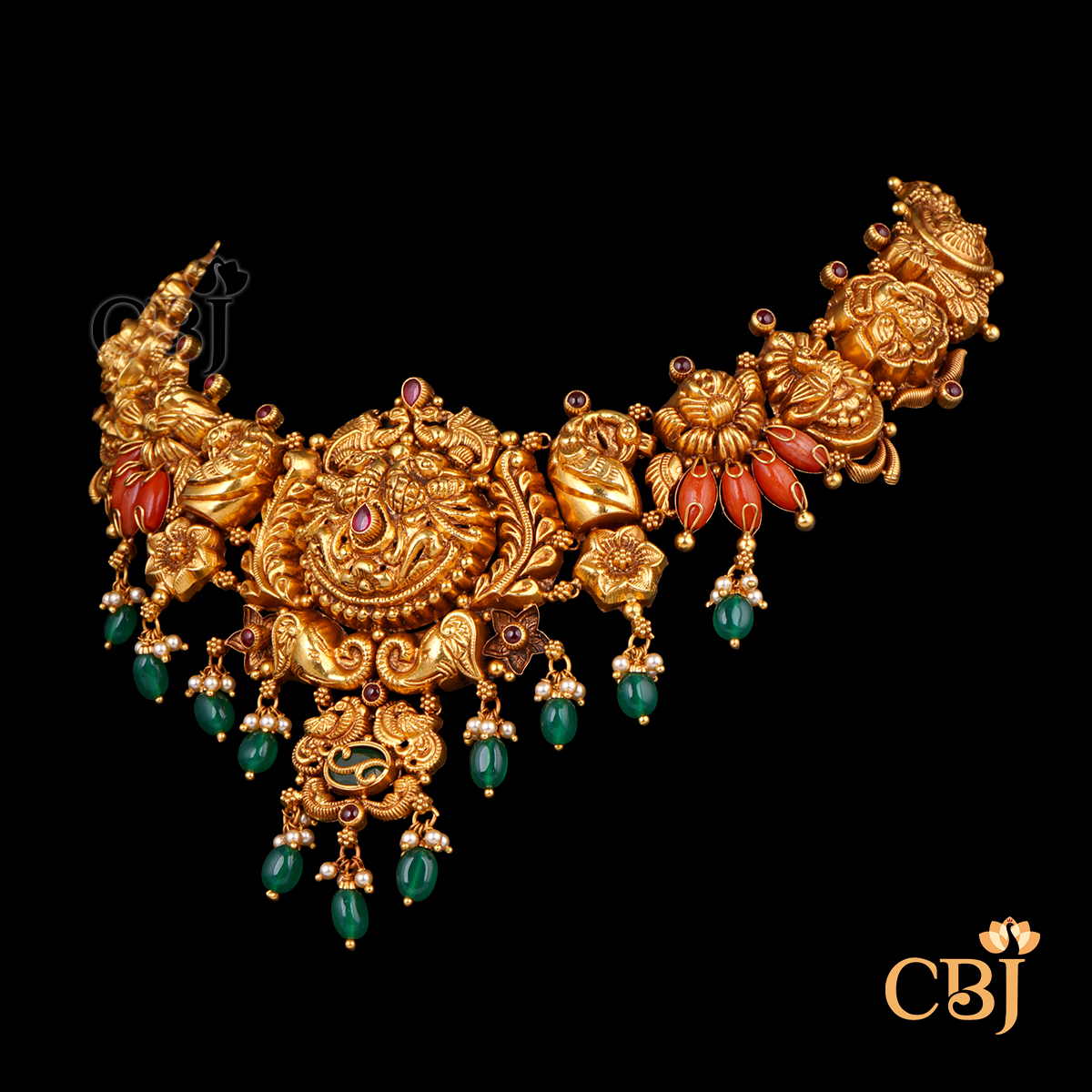 Antique Style 13 Grams Short Nakshi Gold Necklace Design
