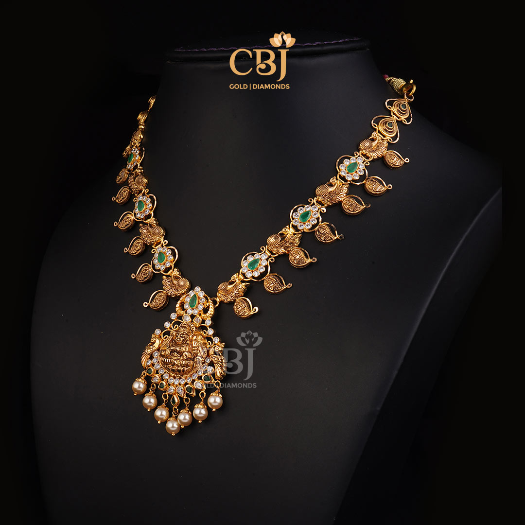Lightweight 10 Grams Nakshi Gold Necklace with Classic Finish