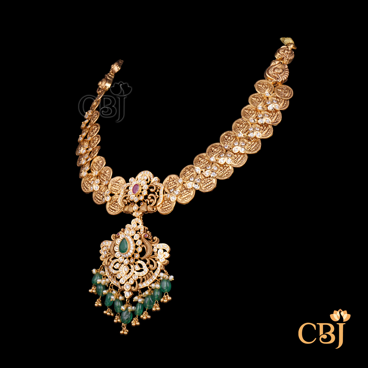10 Grams Lightweight Antique Nakshi Short Gold Necklace Style