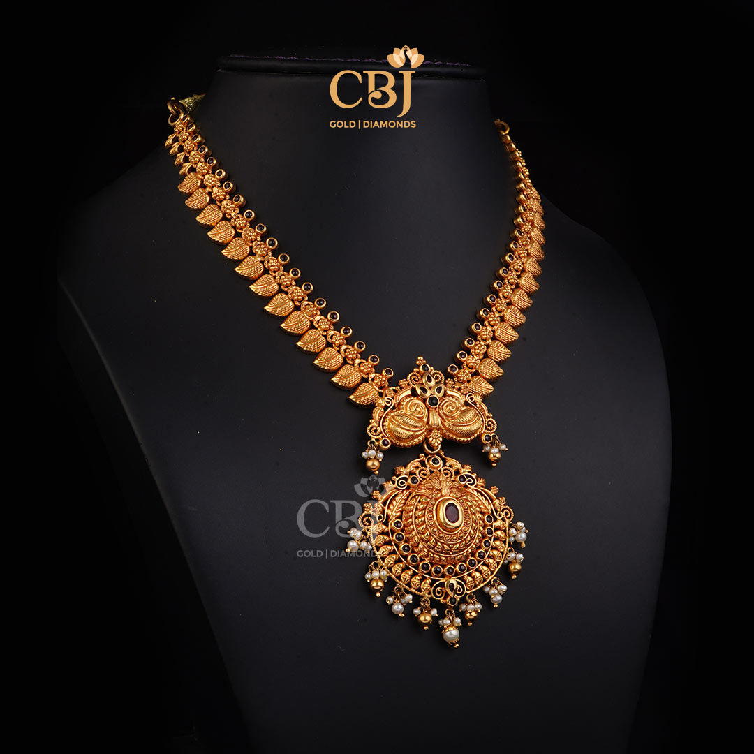 Lightweight 10 Grams Nakshi Gold Necklace with Classic Finish