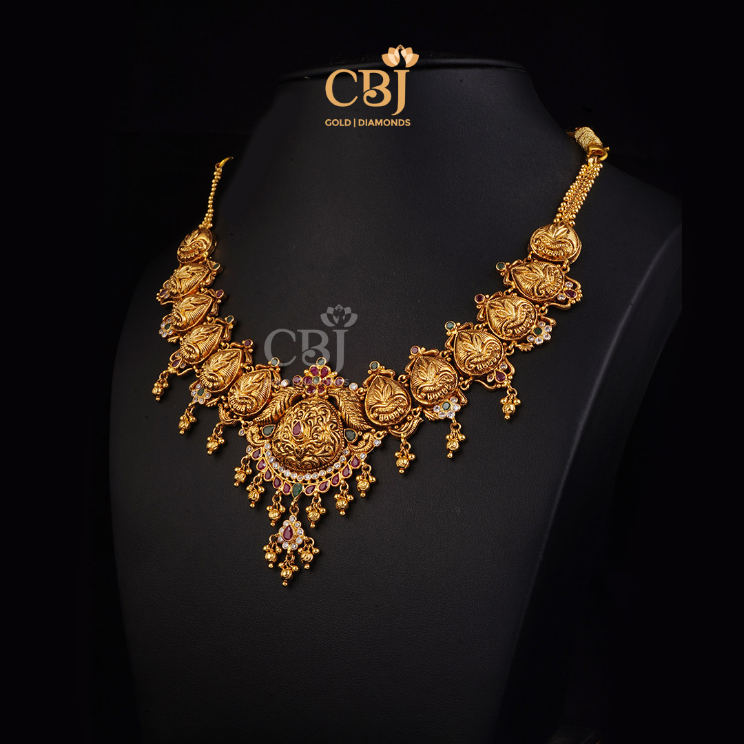 Lightweight 10 Grams Nakshi Gold Necklace with Classic Finish