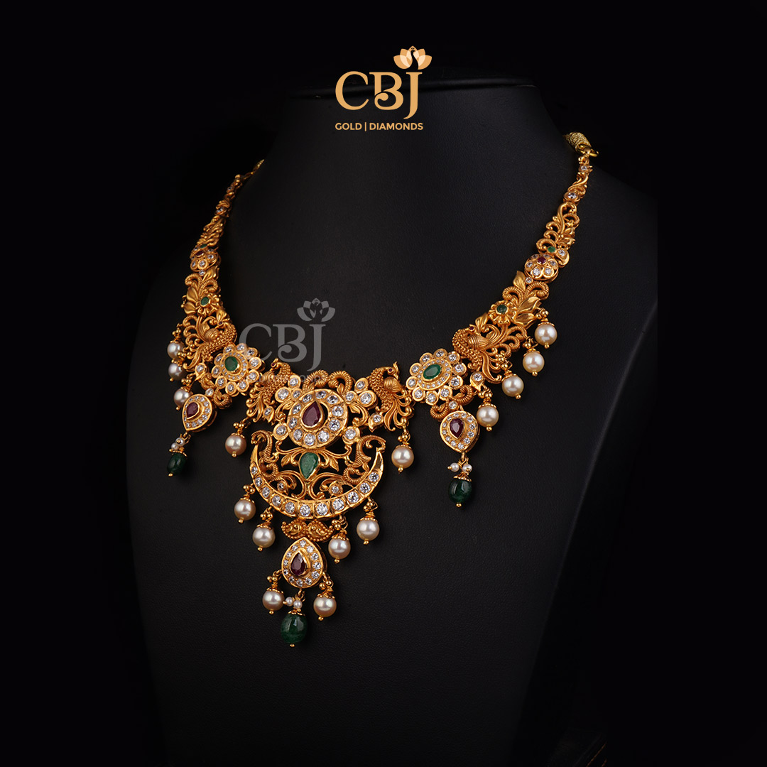 10 Grams Lightweight Antique Nakshi Short Gold Necklace Style