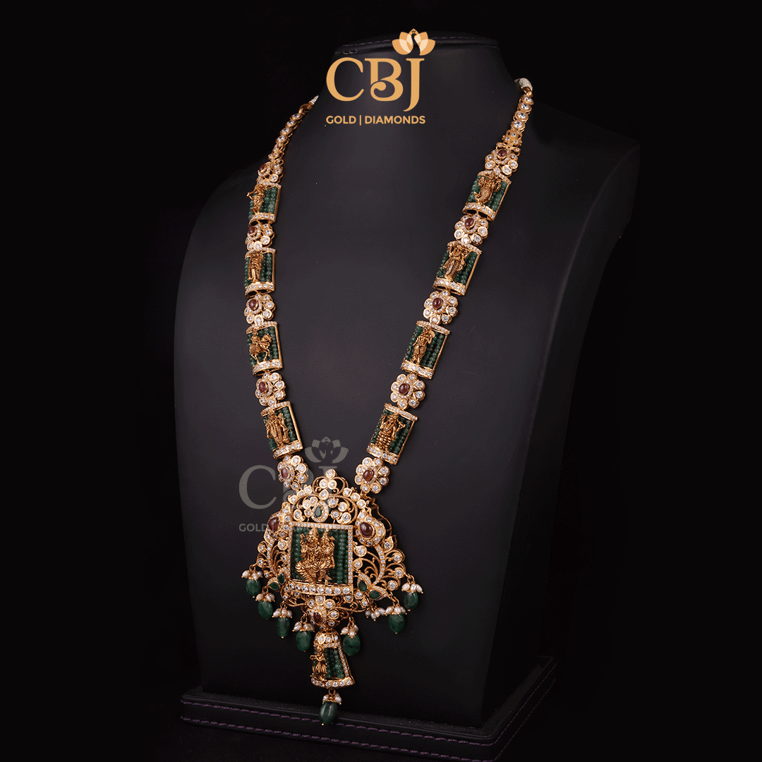 48 grams Antique lightweight Nakshi long Haram Necklace Design