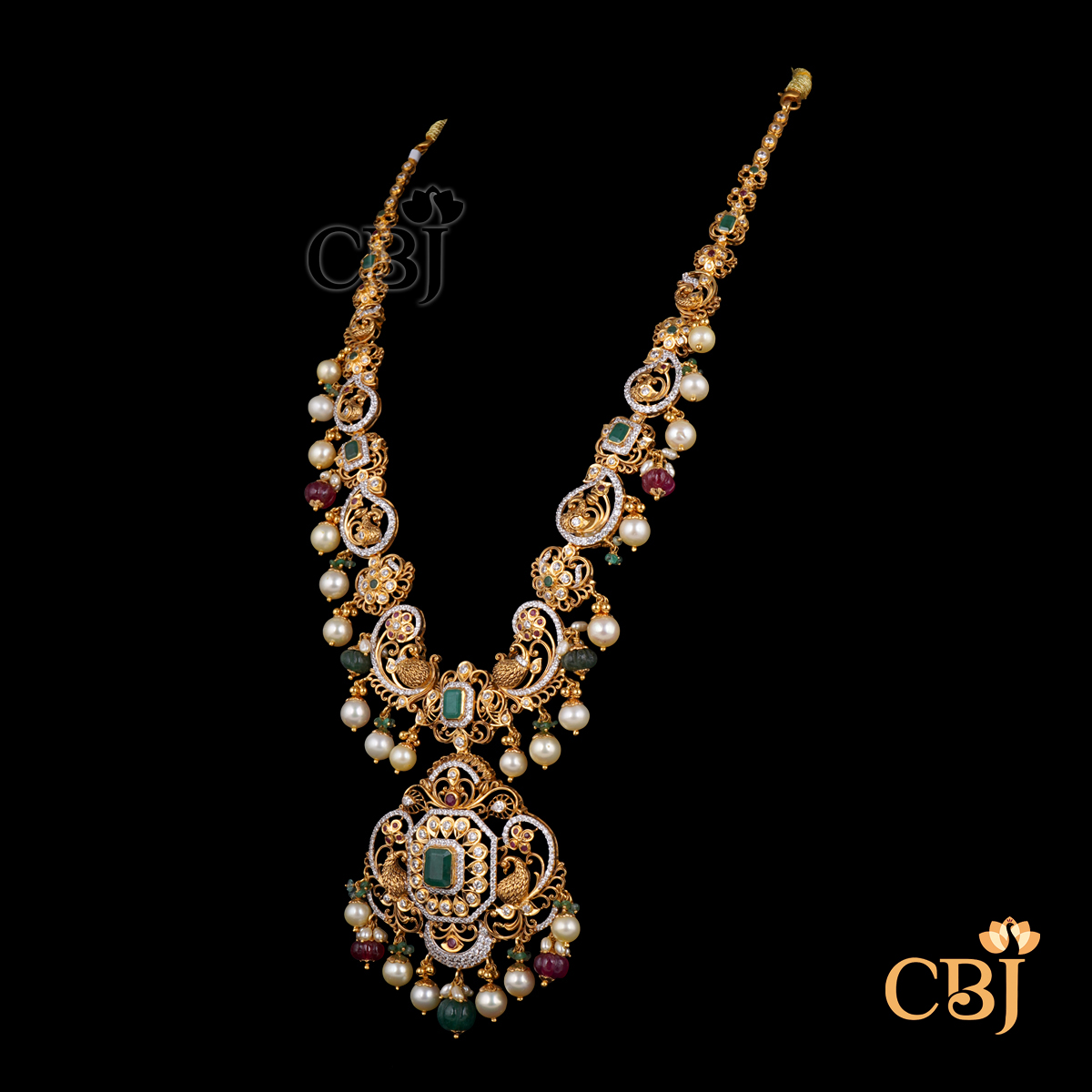 48 grams Antique lightweight Nakshi long Haram Necklace Design