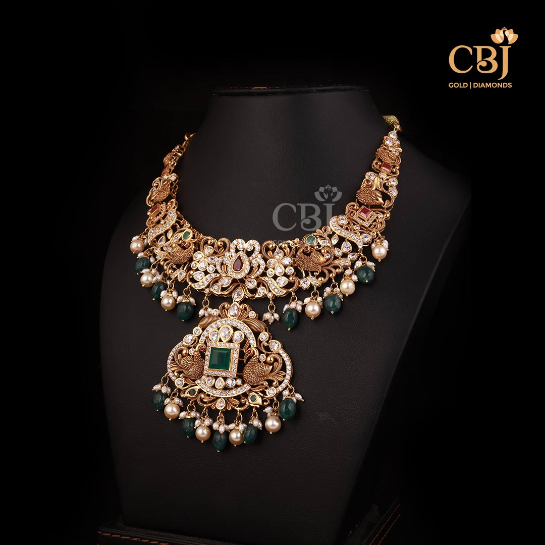 Antique Nakshi Short Gold Necklace Crafted in 17 Grams