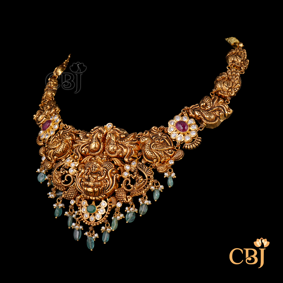 Antique Nakshi Short Gold Necklace Crafted in 17 Grams