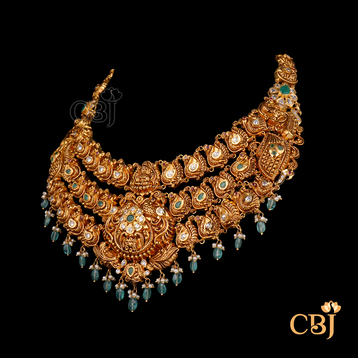 Antique Style 13 Grams Short Nakshi Gold Necklace Design
