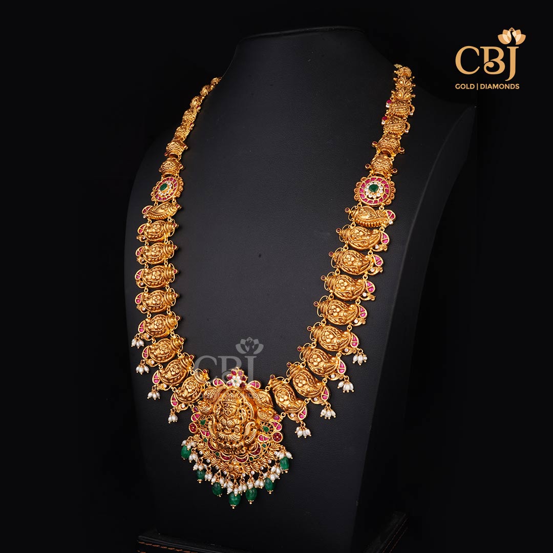 48 grams Antique lightweight Nakshi long Haram Necklace Design