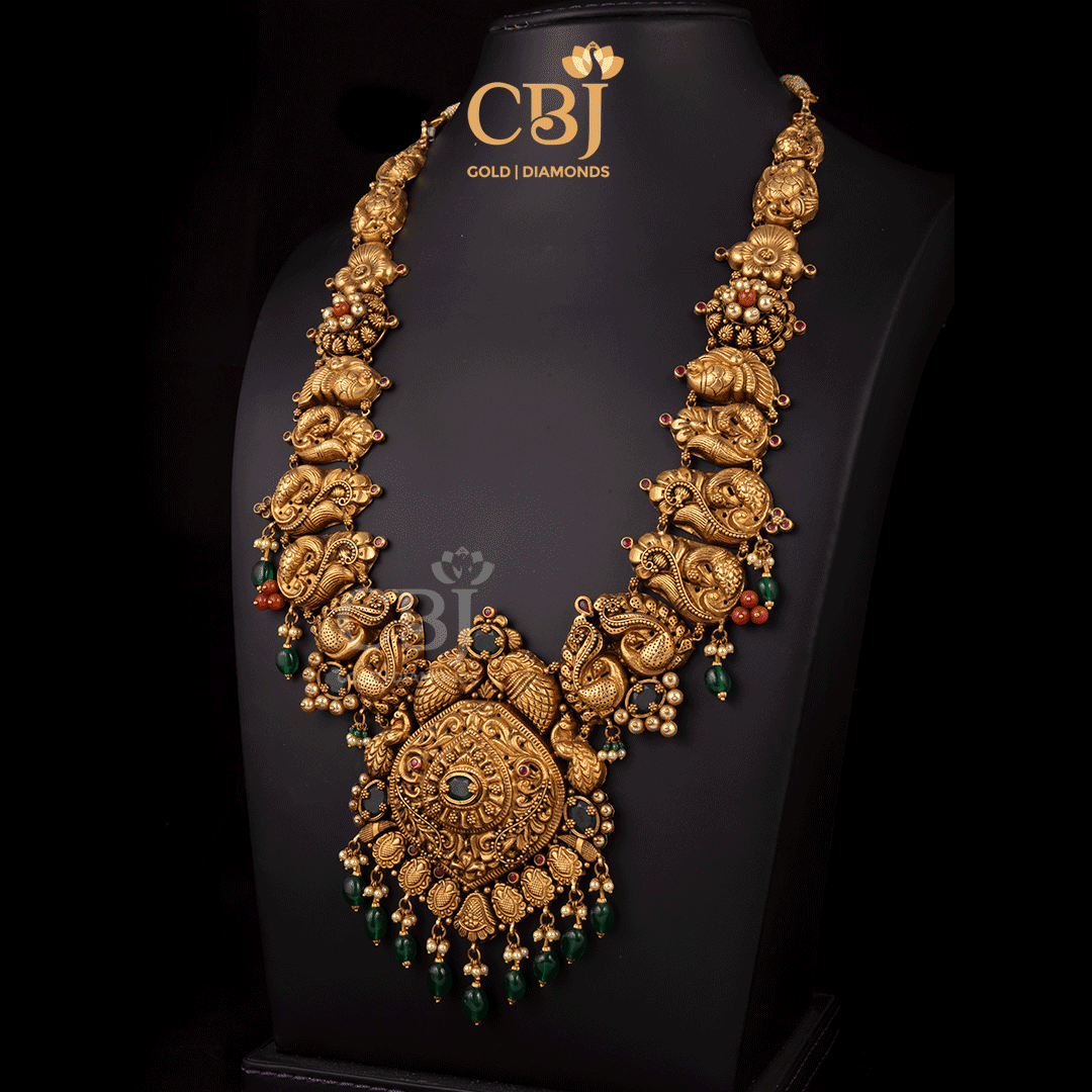 48 grams Antique lightweight Nakshi long Haram Necklace Design