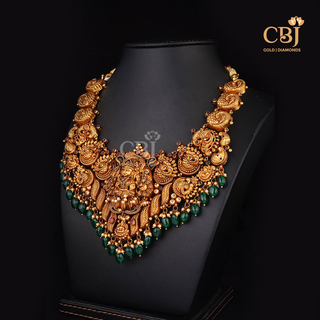 Lightweight 10 Grams Nakshi Gold Necklace with Classic Finish