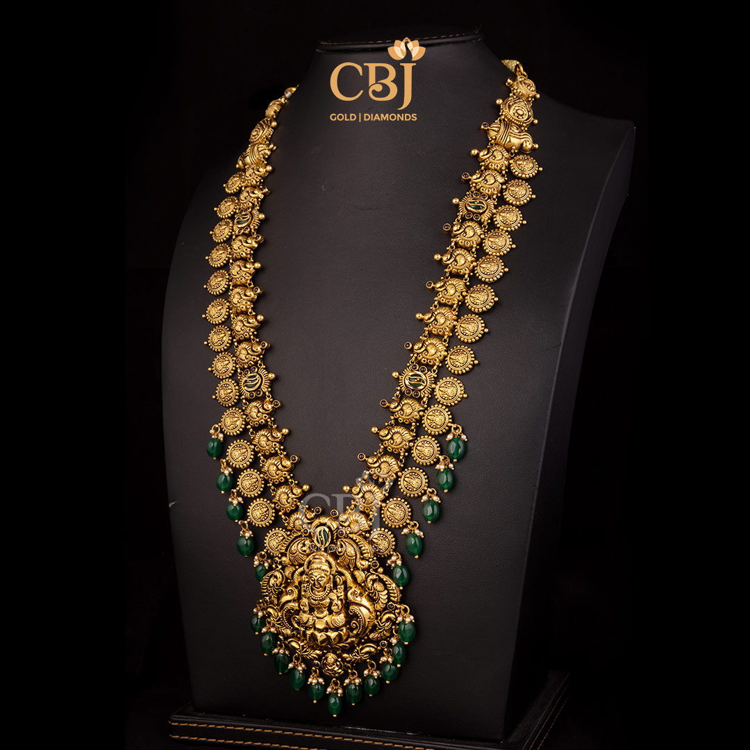 48 grams Antique lightweight Nakshi long Haram Necklace Design
