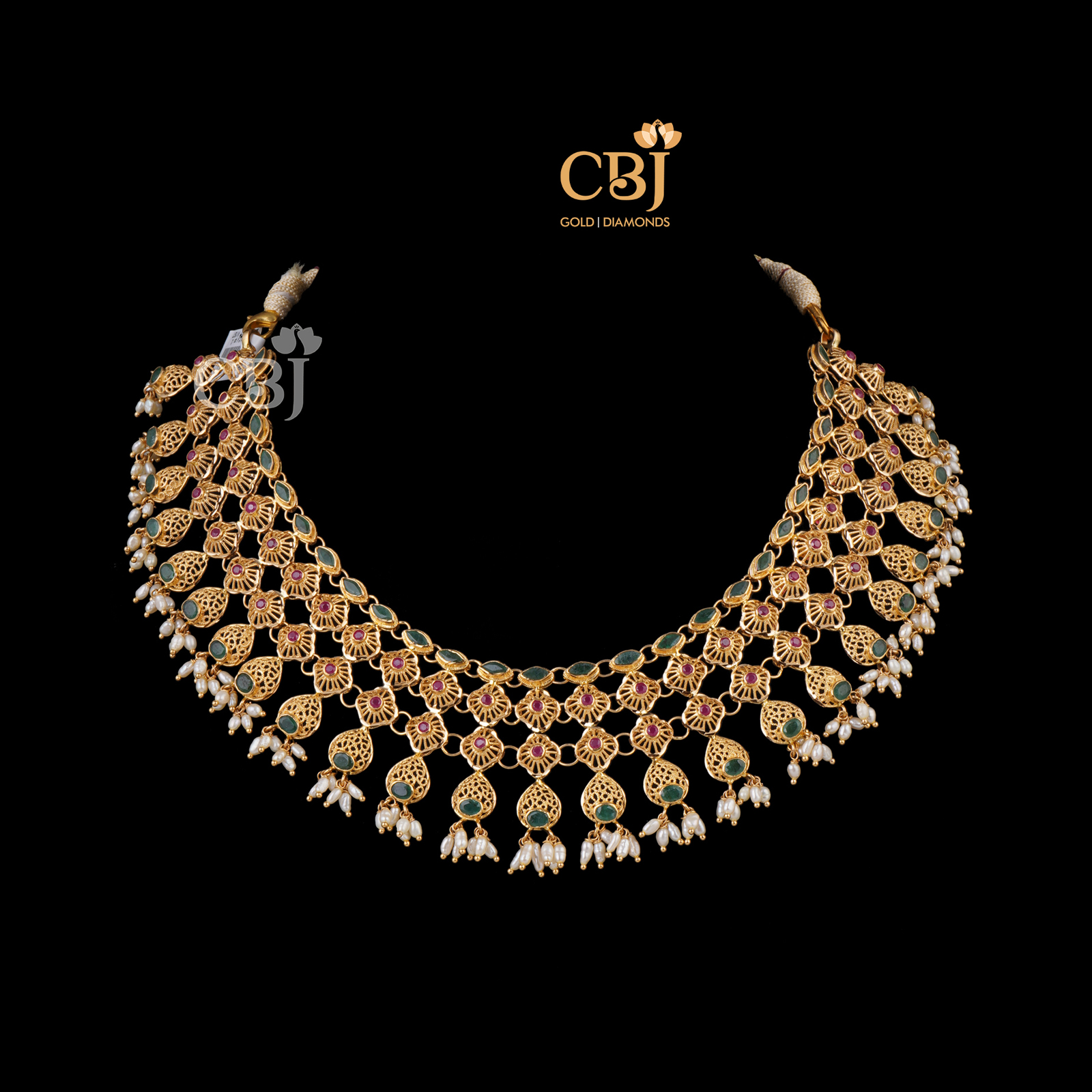Filigree Ruby Emerald Broad Necklace