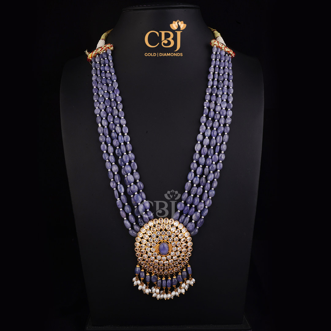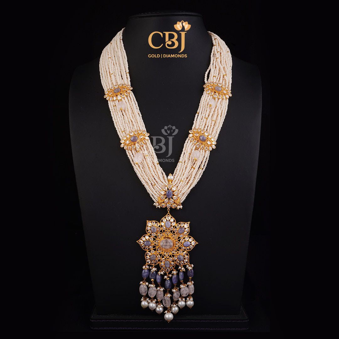 Ultra Light Weight Pearl Bunch Haar With Blue Stones