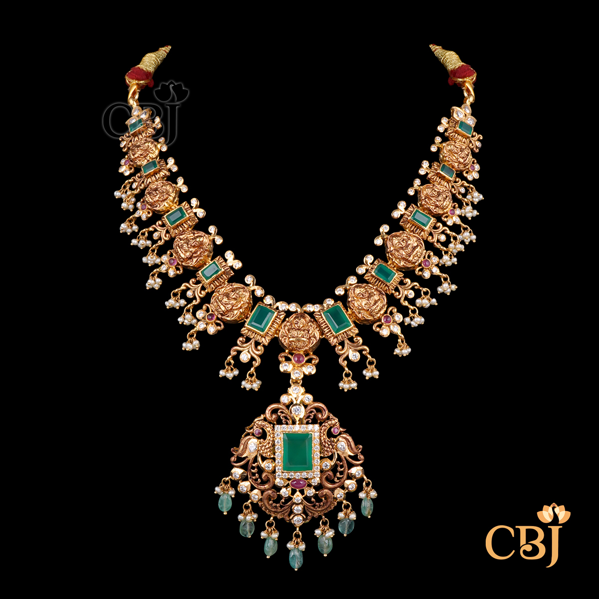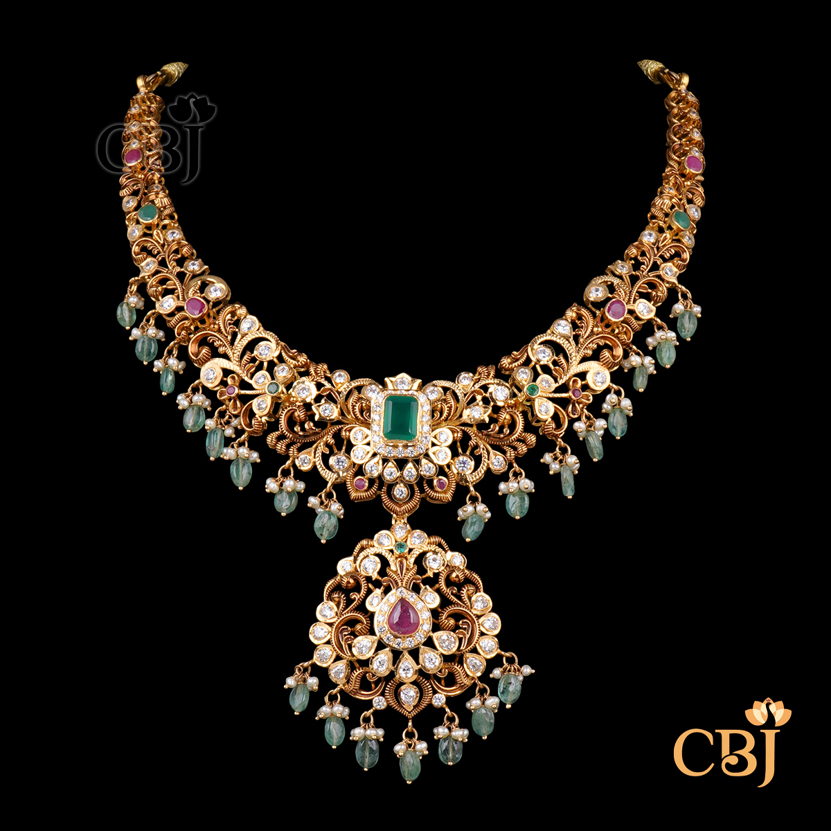 CZ Pachi Ruby Emerald 22K Gold Fusion Necklace 47.57g