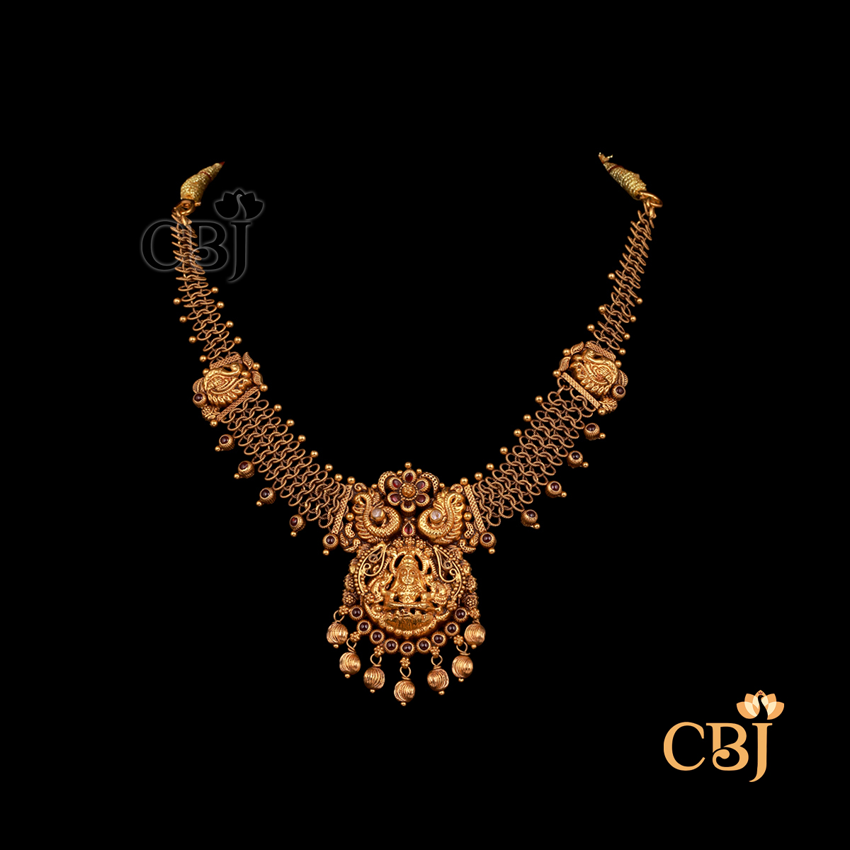 Lightweight 10 Grams Nakshi Gold Necklace with Classic Finish