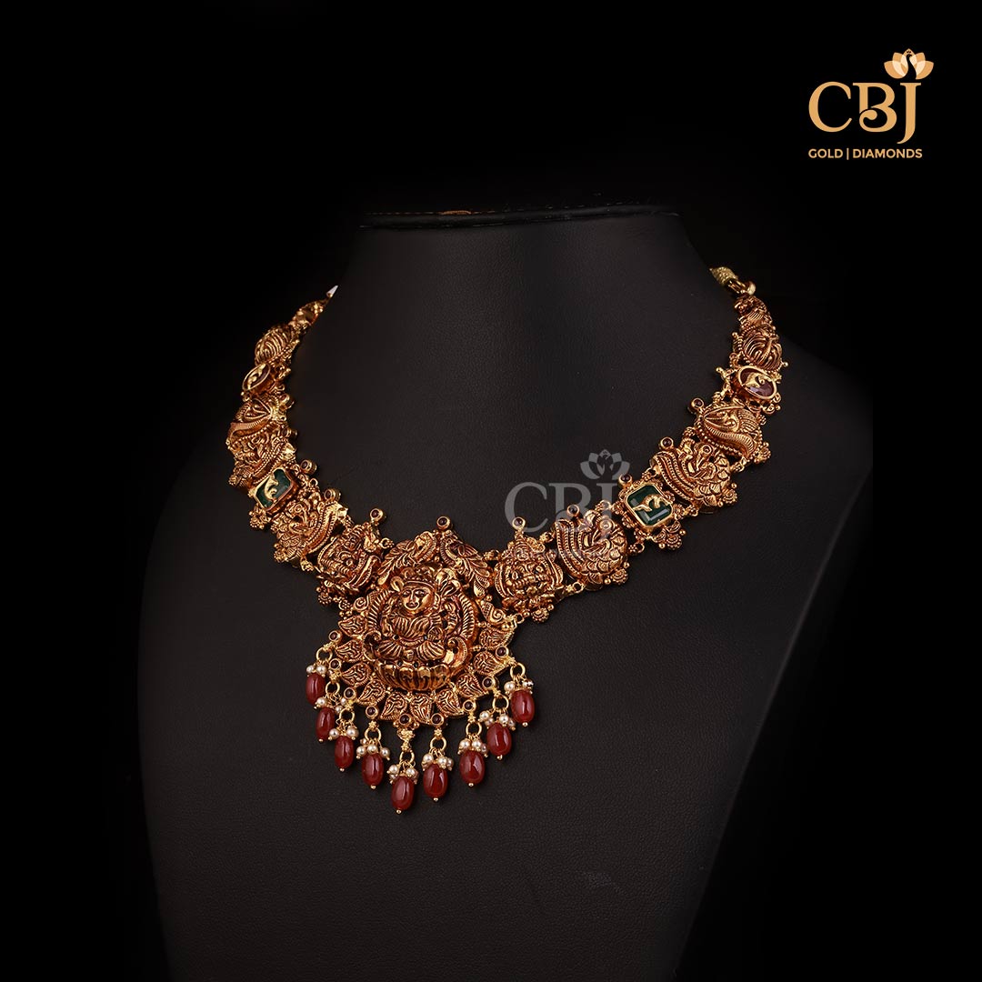 Lightweight 10 Grams Nakshi Gold Necklace with Classic Finish