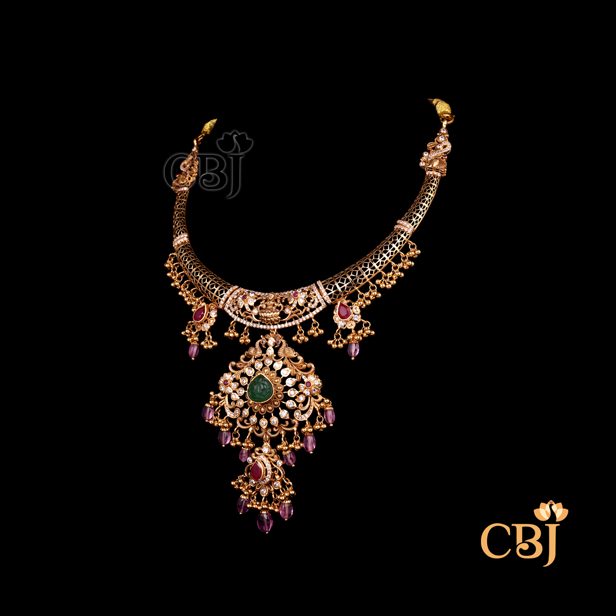 Lightweight 10 Grams Nakshi Gold Necklace with Classic Finish