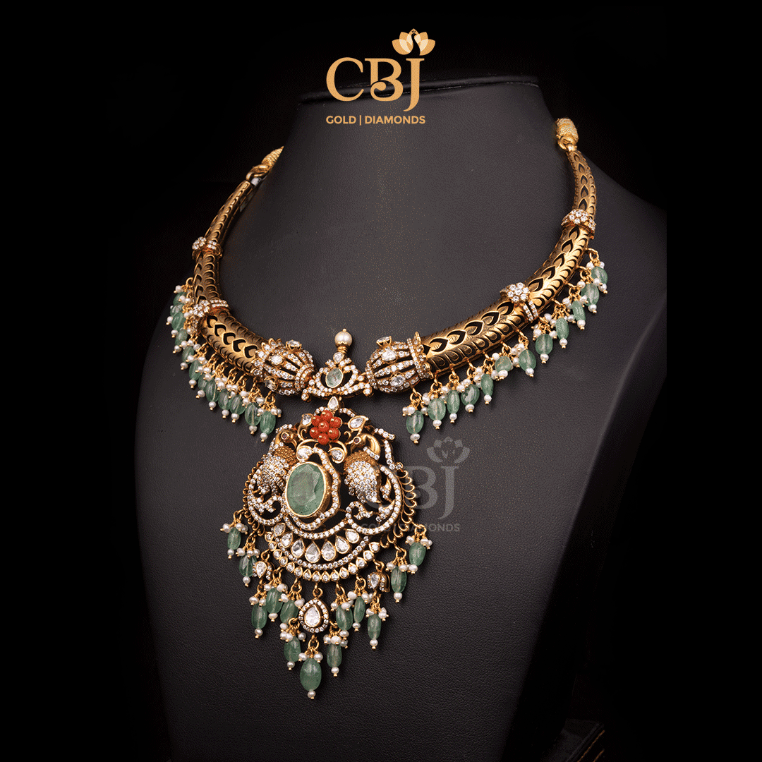 10 Grams Lightweight Antique Nakshi Short Gold Necklace Style