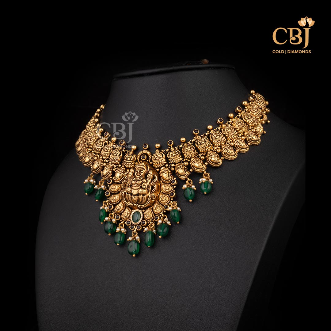 10 Grams Lightweight Antique Nakshi Short Gold Necklace Style
