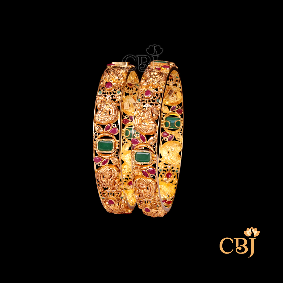 CZ Pachi Lakshmi Bangles 22K Gold 38.76g | CBJ