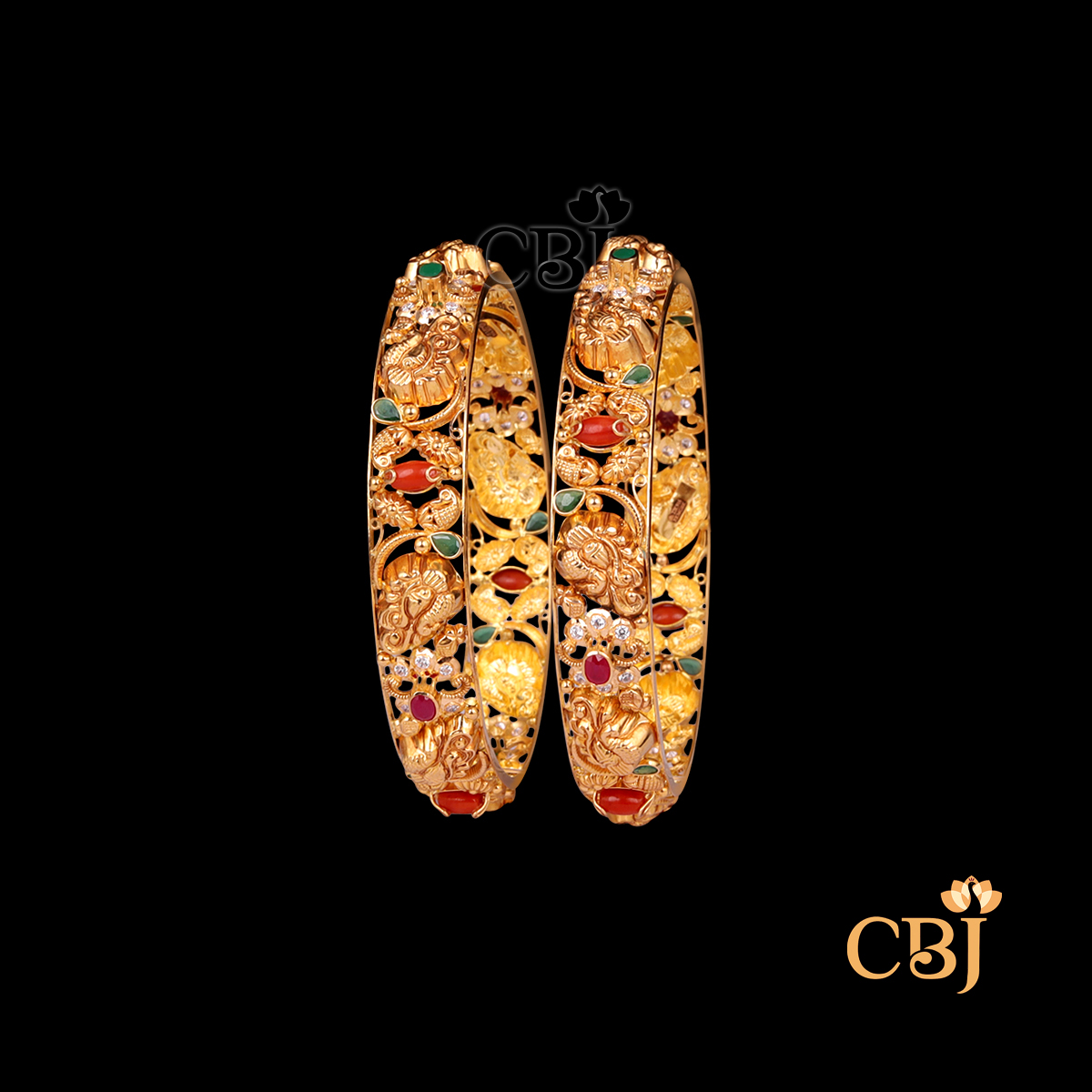 CZ Pachi Lakshmi Bangles 22K Gold 38.76g | CBJ